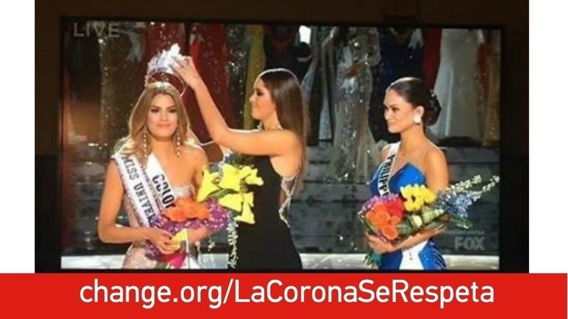 Queremos que se le devuelva la corona a la Señorita Colombia Ariadna Gutierrez ya que no solo los colombianos creemos que es la Miss Universo 2015 si no toda latinoamerica, y muchos partes del mundo con esto no solo el presentador queda mal ante el mundo si no ustedes como empresa ya que contrataron a una persona incompetente para este trabajo; espero esta petición que hoy realizo por Internet sea un hecho Dios los bendiga que tengan una hermosa noche